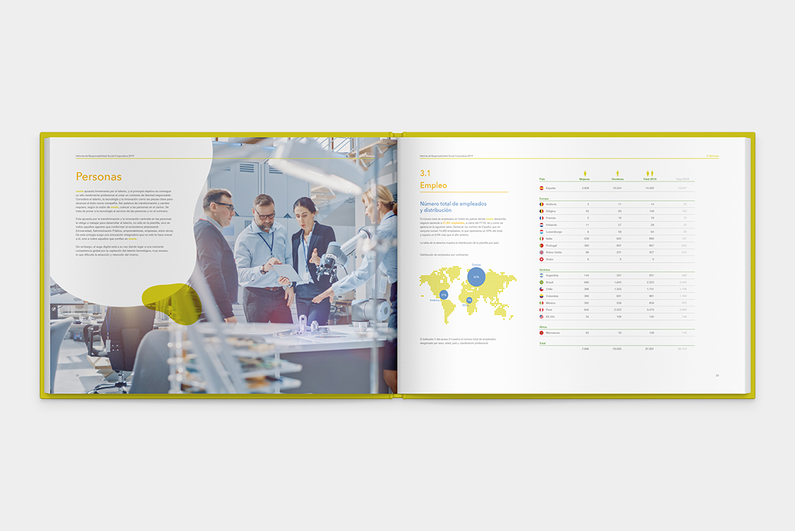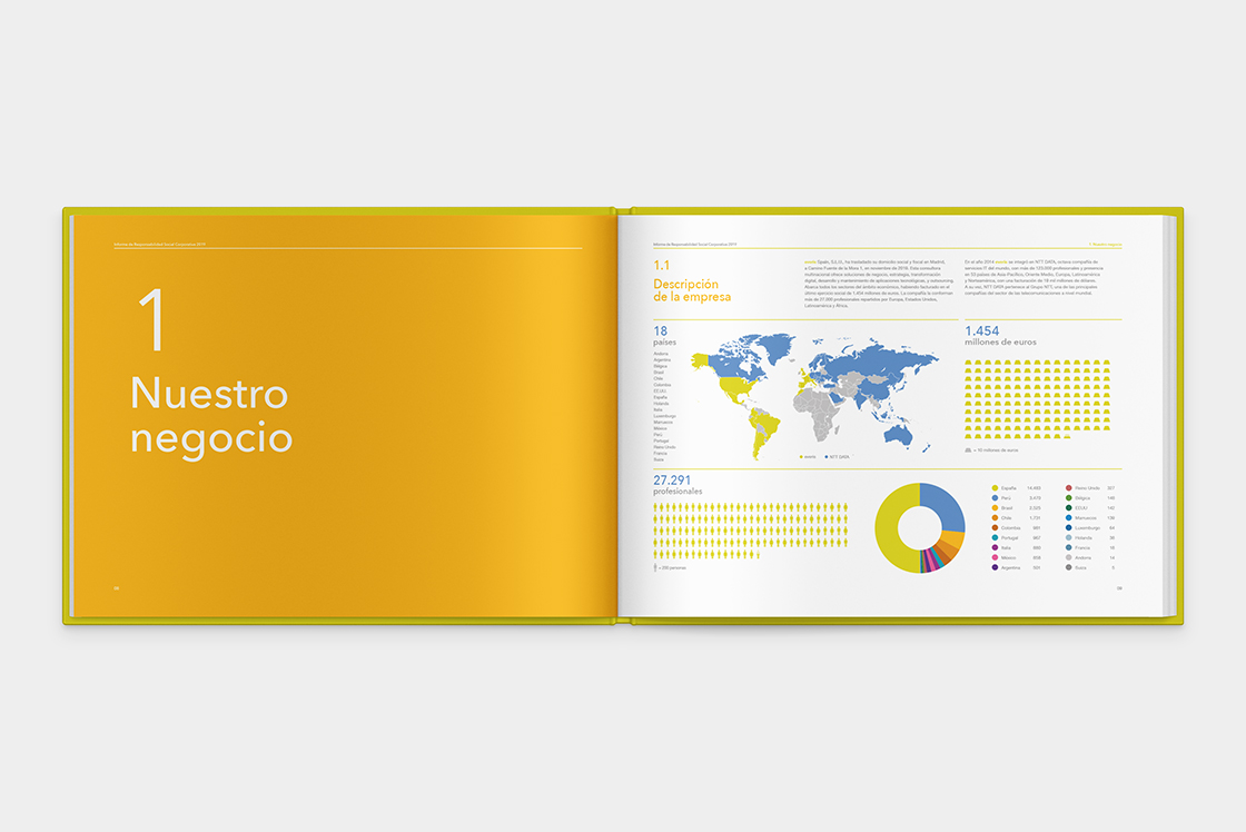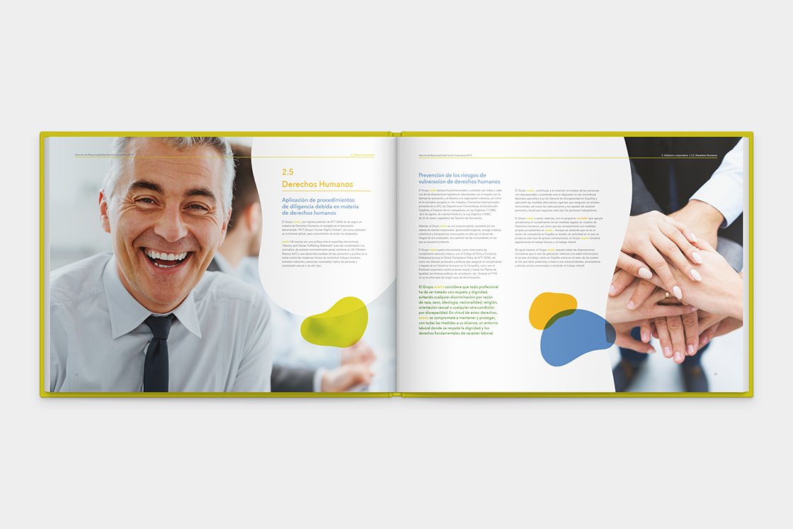 Everis, actualmente conocida como NTT Data España, es una empresa multinacional que ofrece servicios de consultoría tecnológica. Tuve la oportunidad de diseñar su informe de Responsabilidad Social Corporativa.